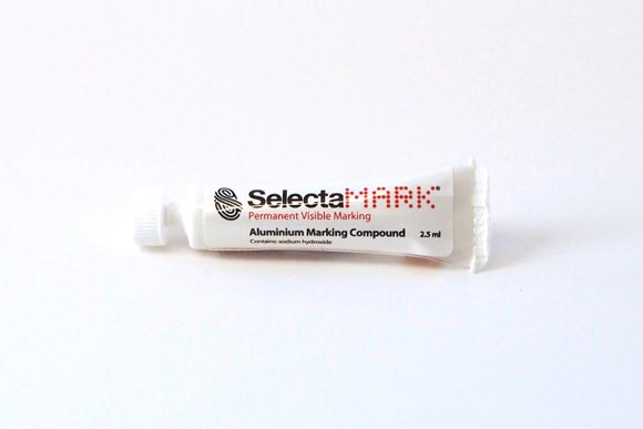 Tubes of aluminium marking compound are designed to permanently etch aluminium surfaces and items.
